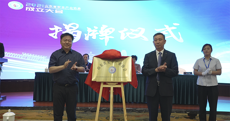 山東省工信廳二級(jí)巡視員張乃君和山東省安全產(chǎn)業(yè)協(xié)會(huì)新任會(huì)長(zhǎng)徐介綱共同為山東省安全產(chǎn)業(yè)協(xié)會(huì)揭牌。