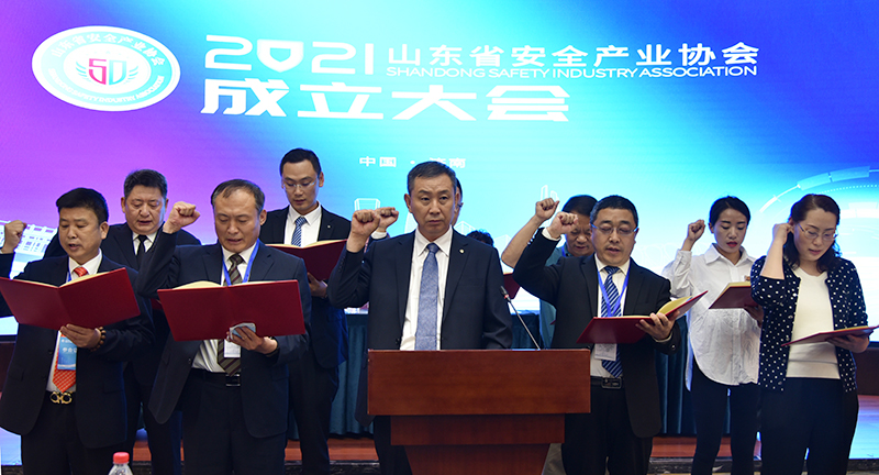 山東省安全產(chǎn)業(yè)協(xié)會(huì)第一屆理事會(huì)會(huì)長(zhǎng)徐介綱帶領(lǐng)副會(huì)長(zhǎng)單位宣讀宣誓