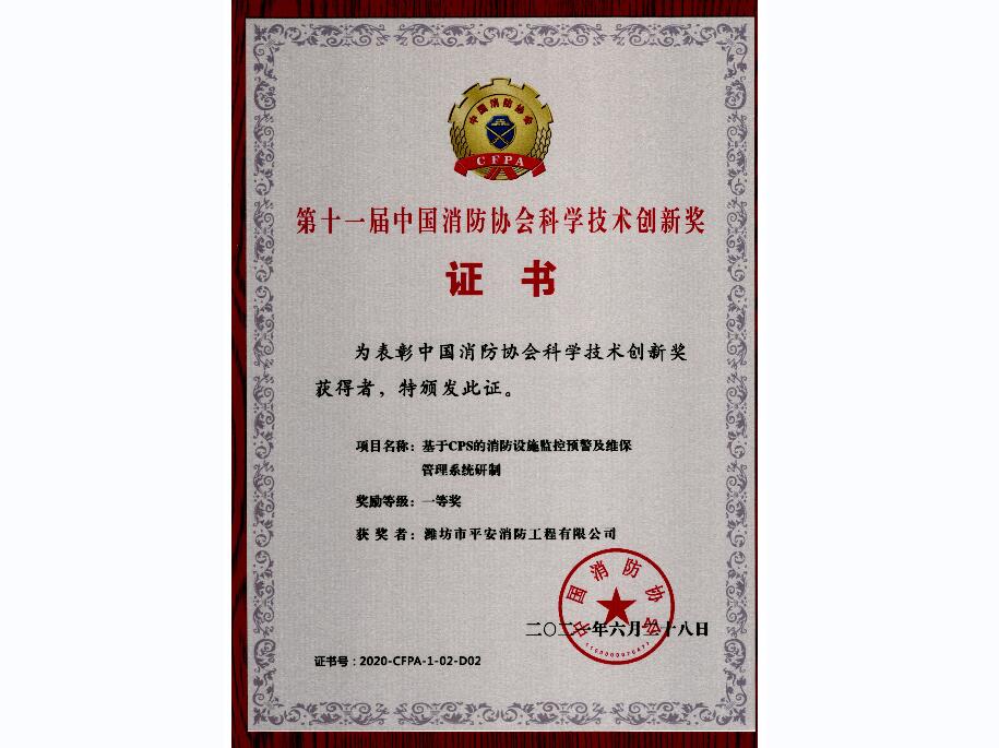 第十一屆中國(guó)消防協(xié)會(huì)科學(xué)技術(shù)創(chuàng)新獎(jiǎng)